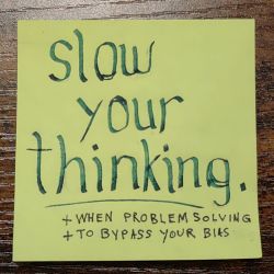 When problem solving – at work, with a partner, with your child – it’s helpful to slow your thinking to make sure that you are addressing the right problem and that you don’t approach it with any built-in biases.