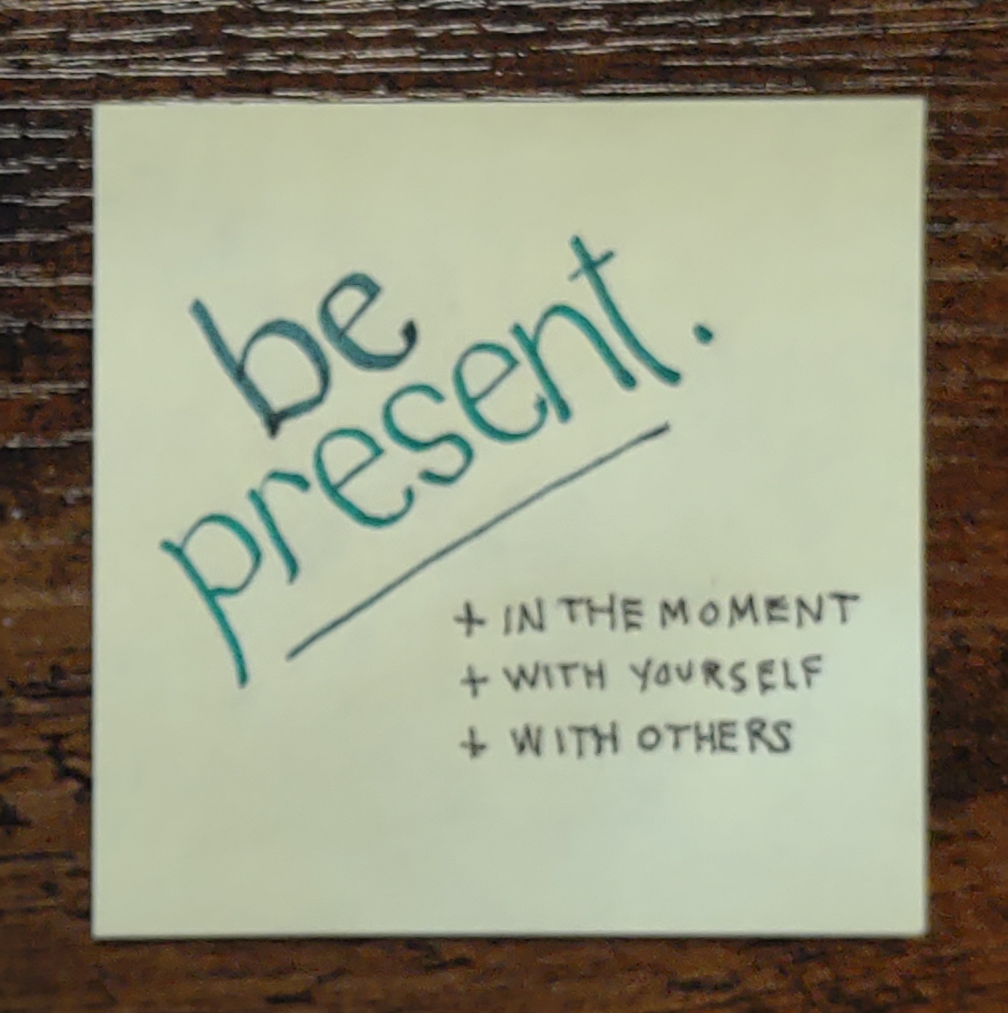 The card reminds me to practice at work as well. When I’m in a meeting I owe the other attendees my best self, and that includes – even demands – my presence.